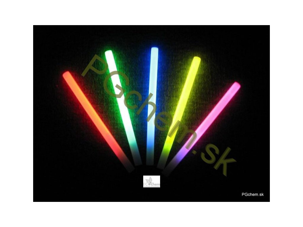 Svietiaca tyčinka (glow stick) produkujúca intenzívne svetlo po dobu až 12 hodín. Nie sú potrebné žiadne batérie. Pre rozsvietenie ohnite plastovú tyčinku tak aby sa nezlomila a zatrepte - po chvíli sa rozžiari. Tyčinka je vodotesná, netoxická, neohrieva sa.