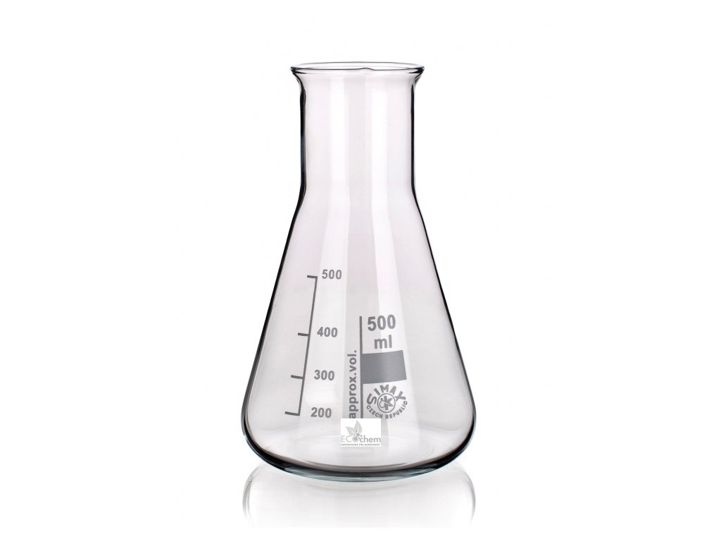 Erlenmeyerove banky, širokohrdlé Širokohrdlá banka pre laboratórne preparačné práce.