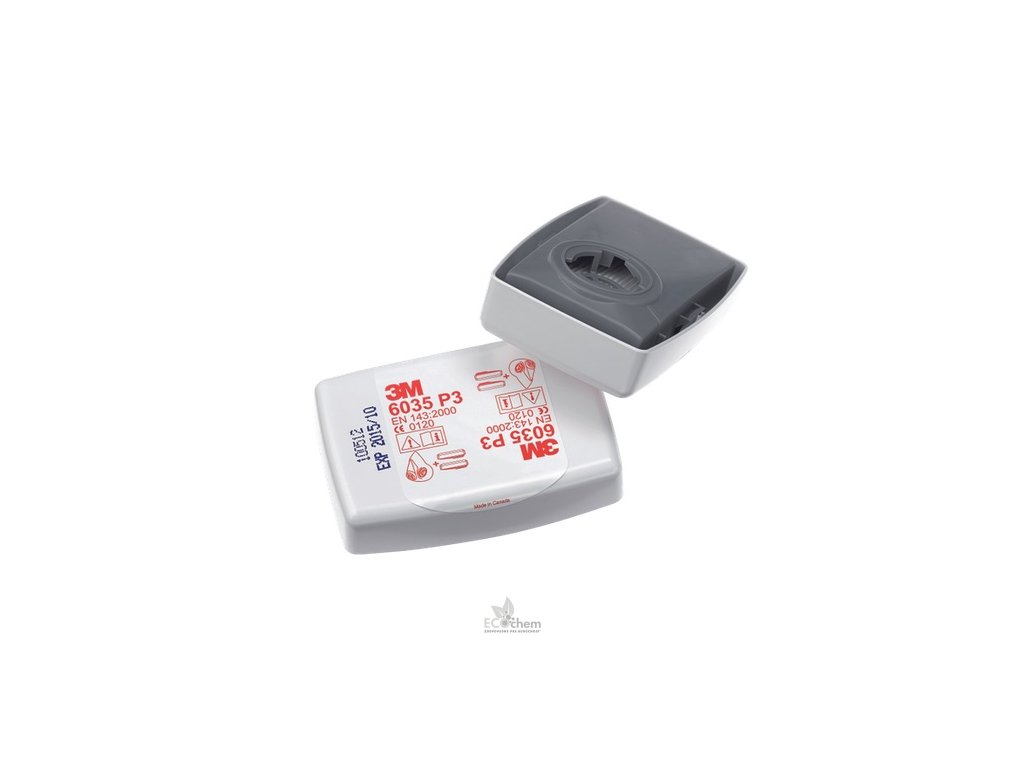 Náhradné filtre 3M 6035 P3 – ochranné pracovné pomôcky použiteľné pre masku radu 6000, 7500 alebo celotvárovú masku radu 6000. Chránia pred pevnými aerosólmi a/alebo kvapalinami, ktoré sú definované ako toxické.