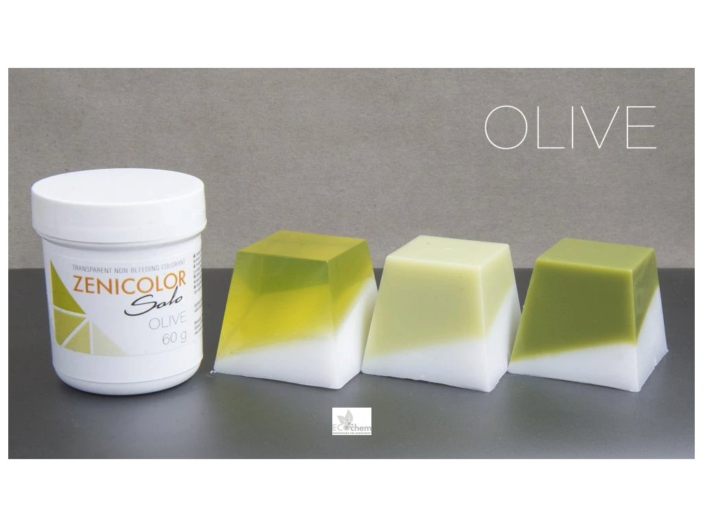 Farbivá ZENICOLOR Solo sú vyrábané na Slovensku a sú určené na farbenie mydlových hmôt, ideálne mydlových kytíc. Jednotlivé farby nemigrujú, tzn. že sa navzájom po naliatí nepremiešavajú. V ponuke je 20 rôznych odtieňov balených v kelímku po 60 g.