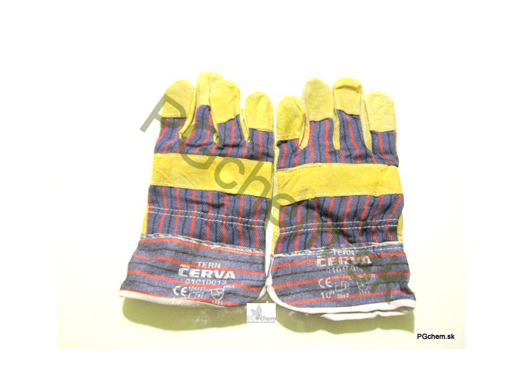 Rukavice z hovädzej štiepenky v dlani s podšívkou, chrbát a manžeta z bavlnenej tkaniny.