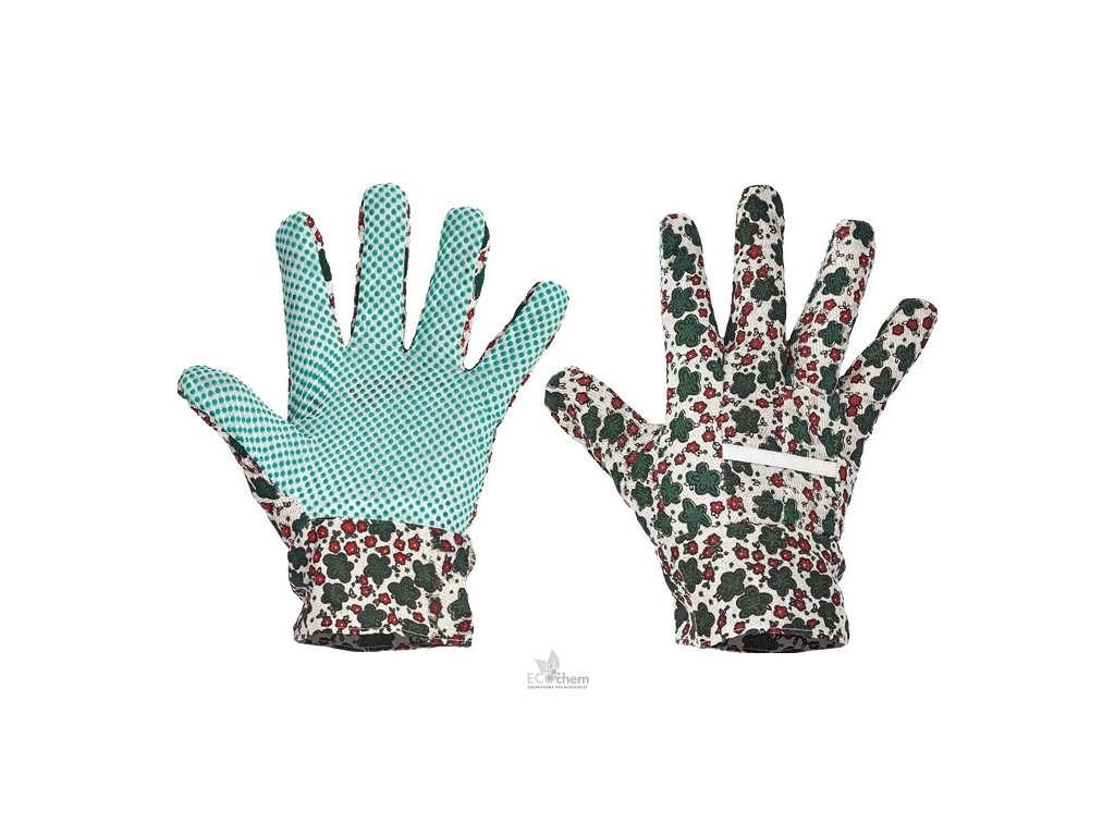 Dámske záhradkárske rukavice, šité pestrofarebnou bavlnenou tkaninou,